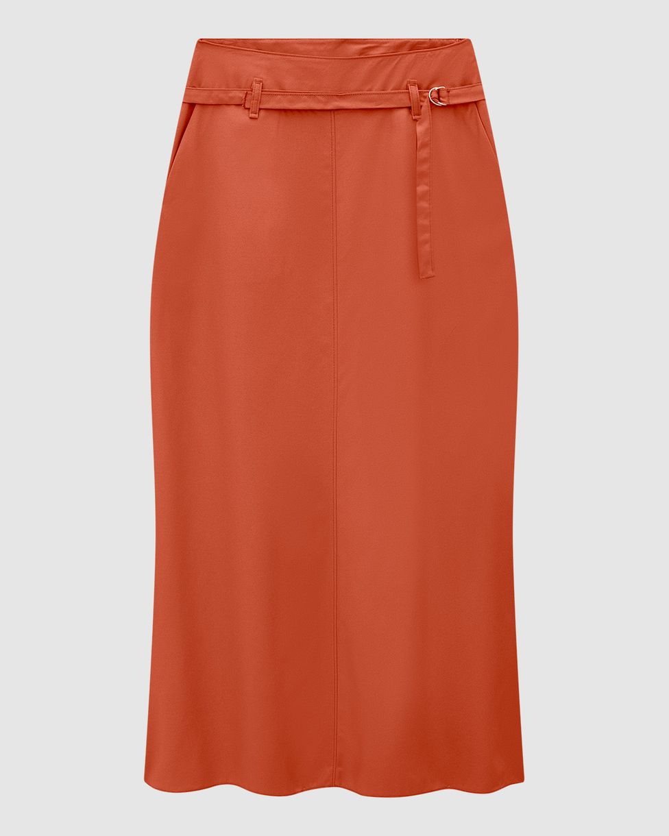 Saia Midi Feminina Evasê Com Cinto Em Crepe - ENFIM