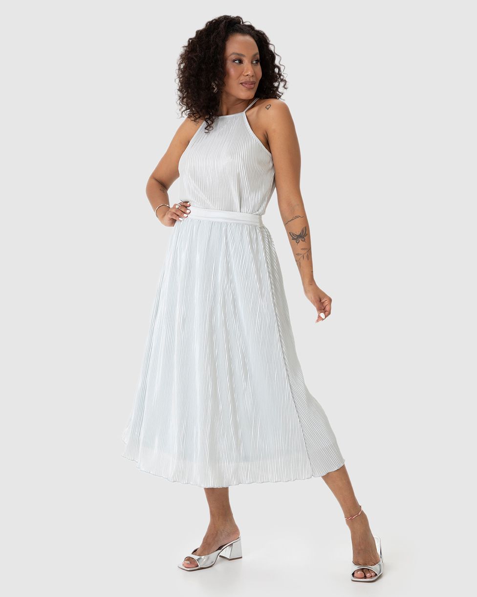 Transforme seu guarda-roupa com a Saia Midi Feminina Evasê em Malha Plissada. Esta saia é a escolha perfeita para quem busca um visual elegante e sofisticado, ideal para diversas ocasiões. O plissado adiciona movimento e leveza, enquanto o corte evasê realça a silhueta, proporcionando conforto e estilo em um só produto.