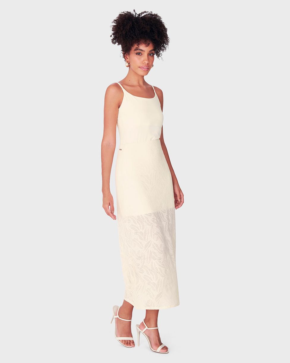 Saia Midi Feminina Evasê Em Malha Renda Stretch - ENFIM Off White - G