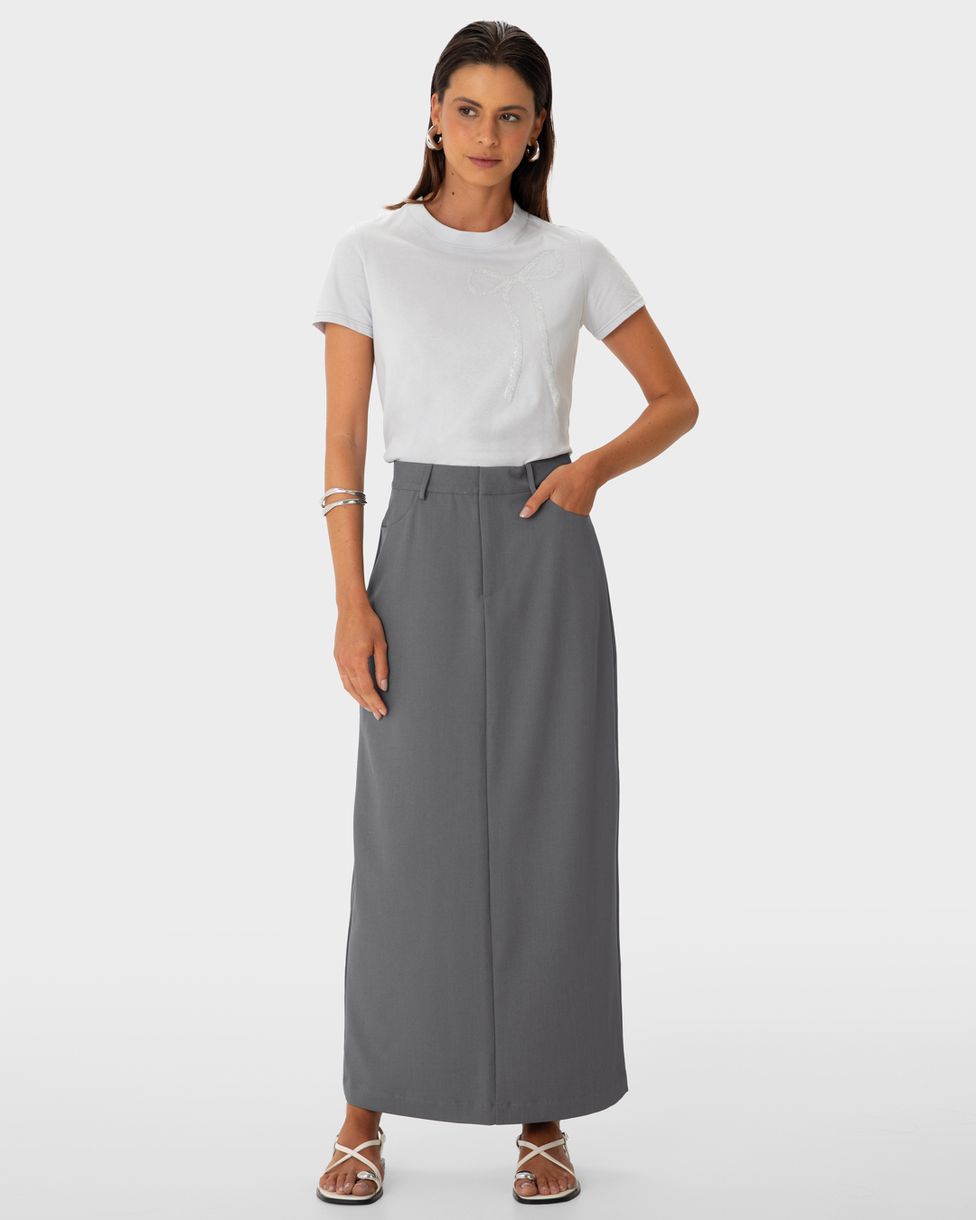 Saia Midi Feminina Fenda Costas Em Tecido Alfaiataria - ENFIM