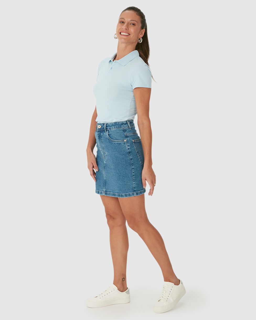 • Saia Reta em jeans com elastano