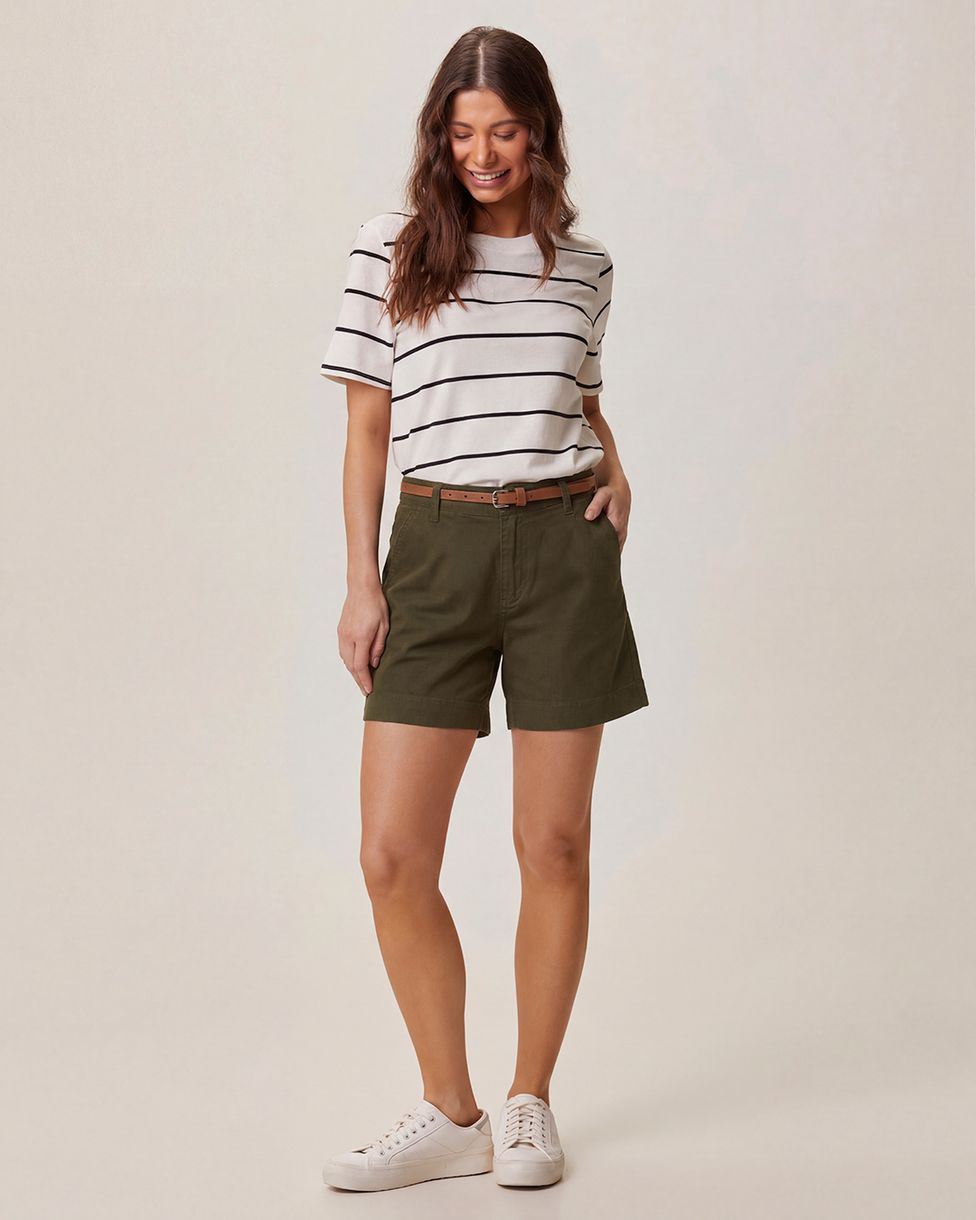 Shorts Alfaiataria Feminino Acompanha Cinto Em Sarja Com Elastano