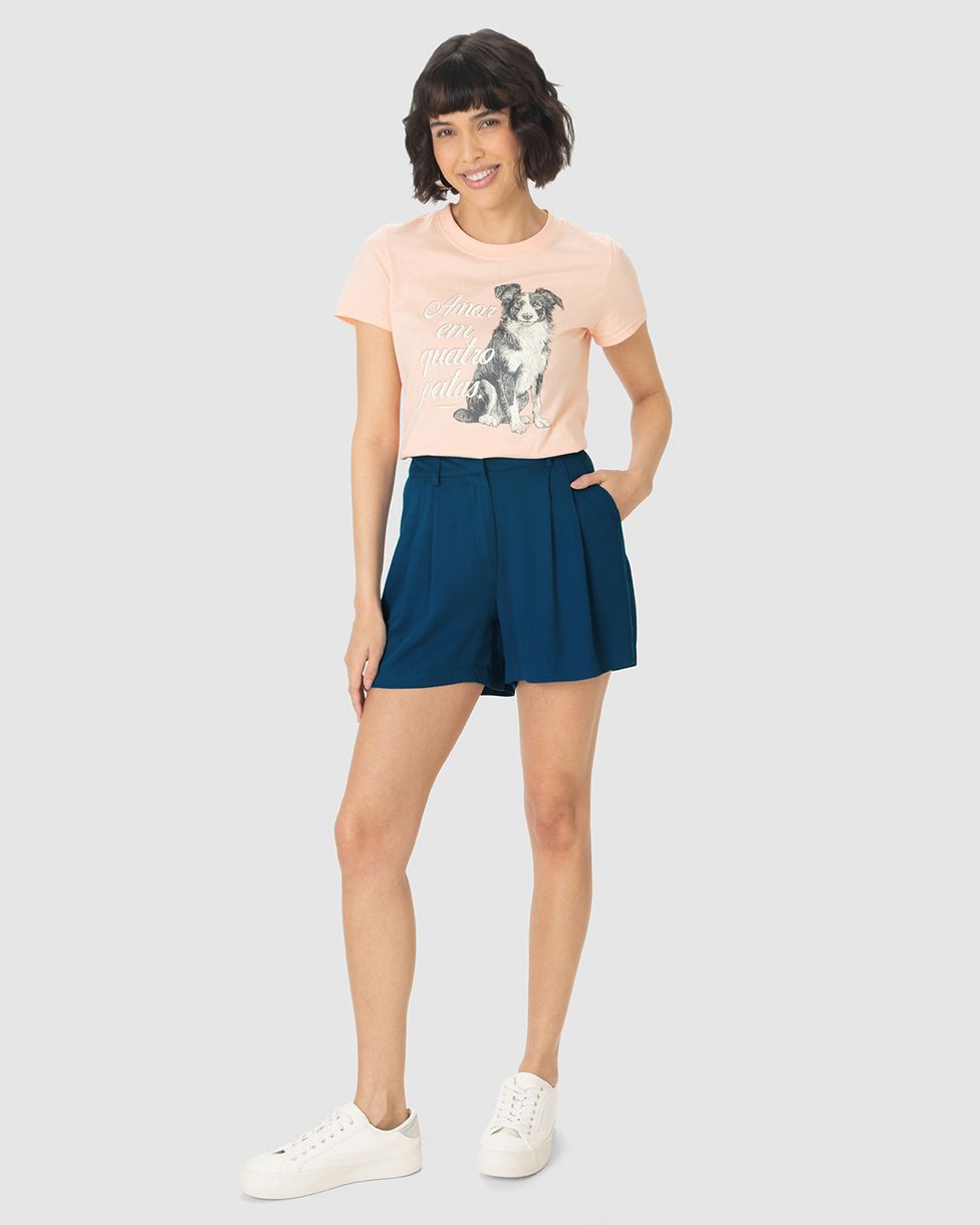 Shorts Alfaiataria Feminino Pregas Frontais Em Viscose Sarjada
