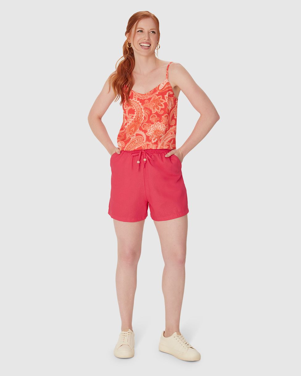 Shorts com modelagem clochard, de cintura alta e detalhe de cordão frontal, valoriza a silhueta e proporciona um caimento impecável. Confeccionado em viscolinho leve e respirável, este shorts garante um toque suave e fresco na pele, ideal para os dias mais quentes.