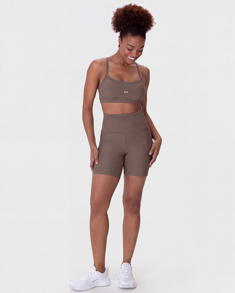 Shorts Esportivo Feminino Bolso Cós Frontal Em Malha Canelada Malwee Active Marrom - P