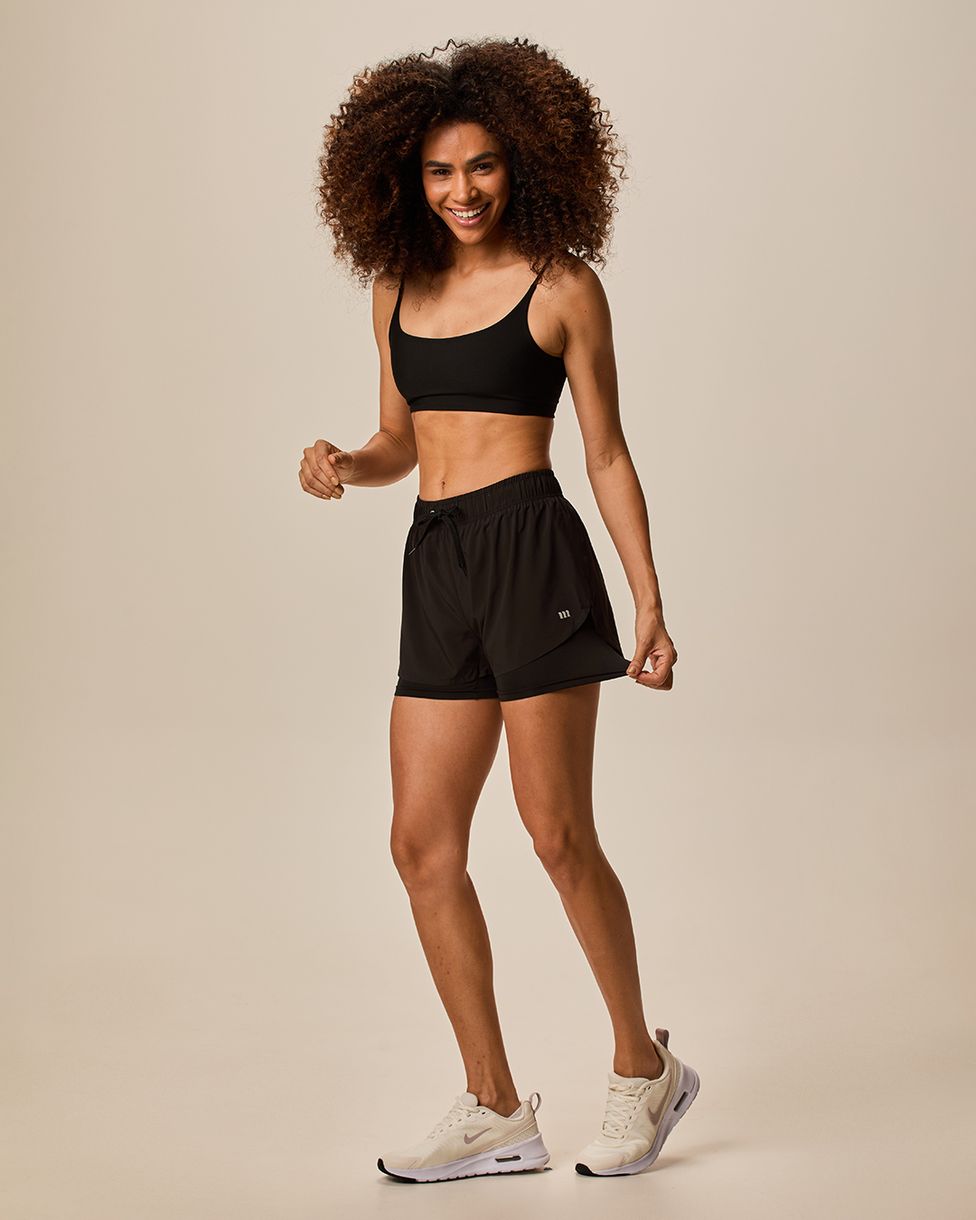 Shorts Esportivo Feminino Duplo com cadarço funcional, desenvolvido em tafetá com elastano, proporciona ajuste perfeito, flexibilidade e conforto para seus treinos. O modelo conta com shorts interno que oferece suporte extra, ideal para alta performance e liberdade de movimento.