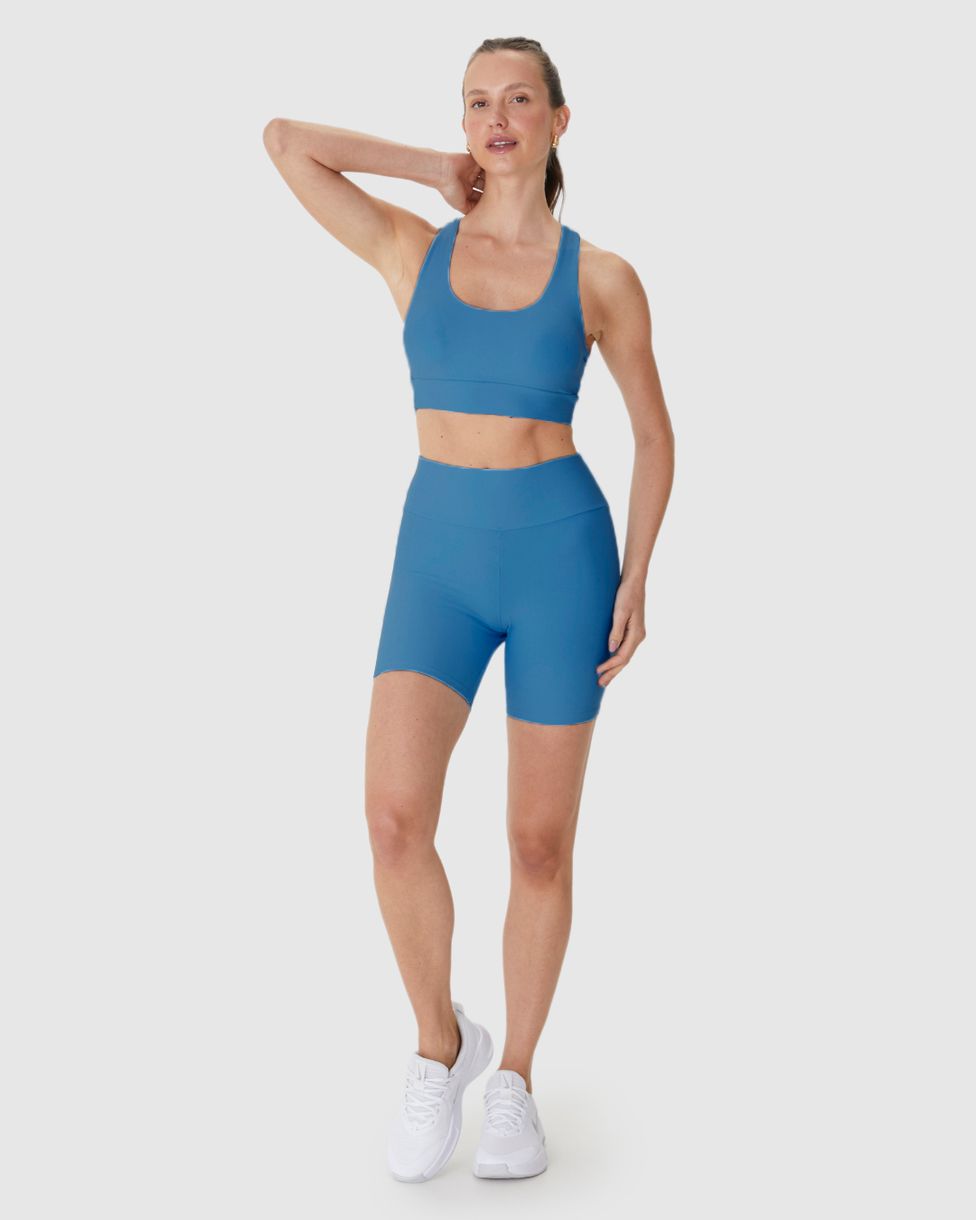 Shorts Esportivo Feminino Justo feito em malha compress eco com proteção UV50+, perfeito para quem busca alta performance aliada à sustentabilidade e proteção solar. Com tecido de compressão que modela o corpo, oferece conforto, suporte e liberdade total para seus treinos.