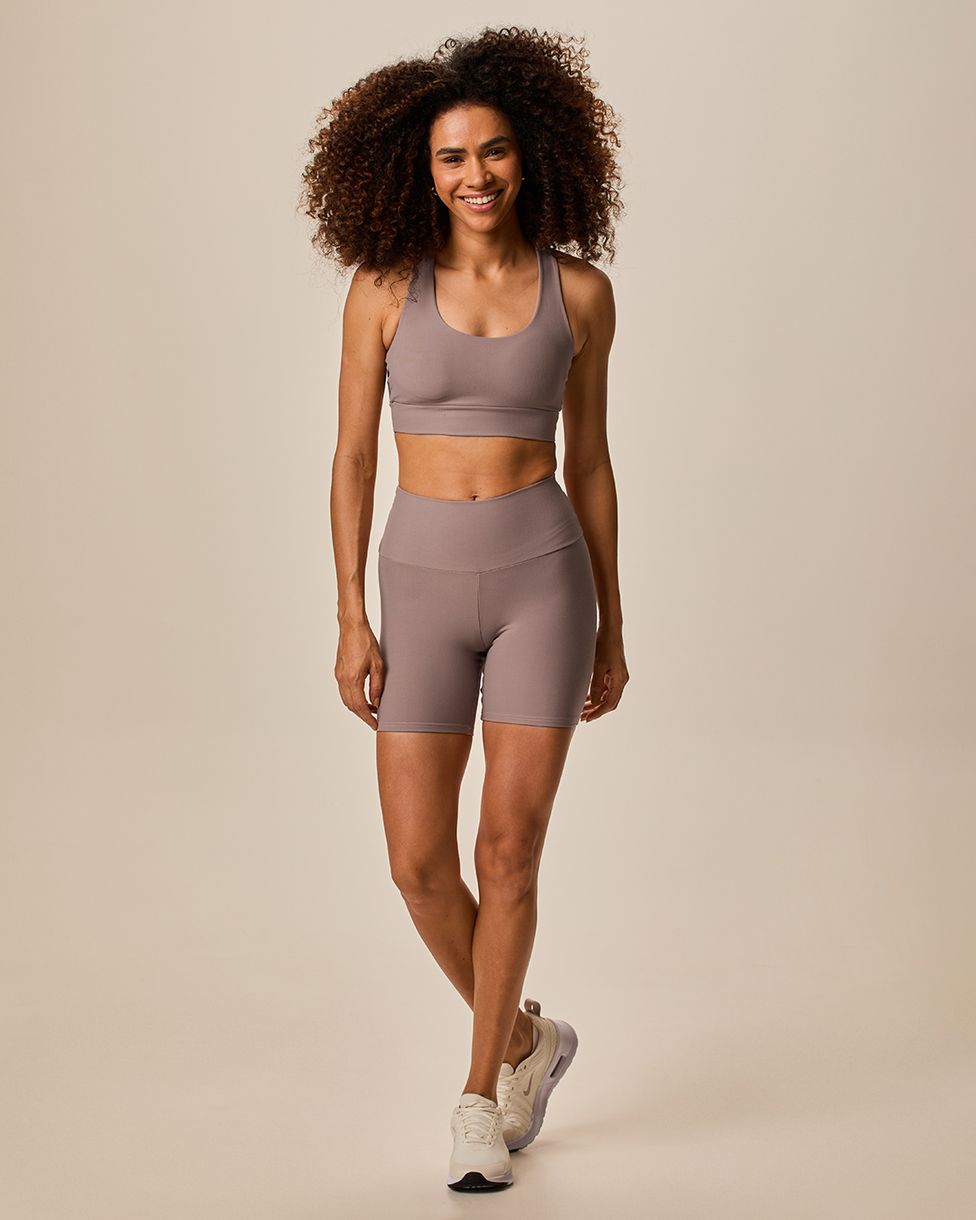 Shorts Esportivo Feminino Justo feito em malha compress eco com proteção UV50+, perfeito para quem busca alta performance aliada à sustentabilidade e proteção solar. Com tecido de compressão que modela o corpo, oferece conforto, suporte e liberdade total para seus treinos.