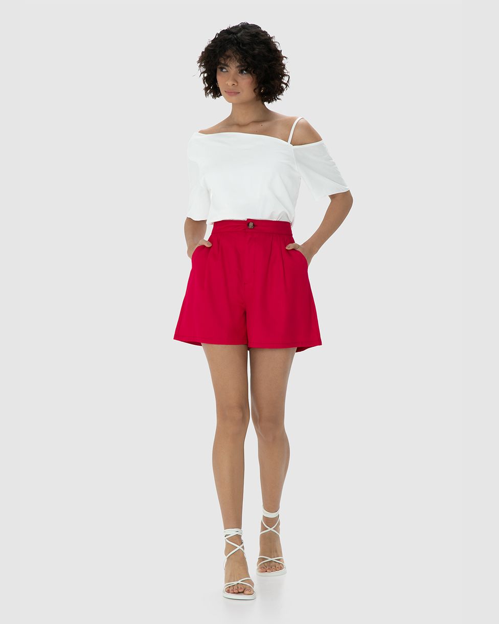 Shorts Feminino Alfaiataria Bolso Faca Em Crepe - ENFIM
