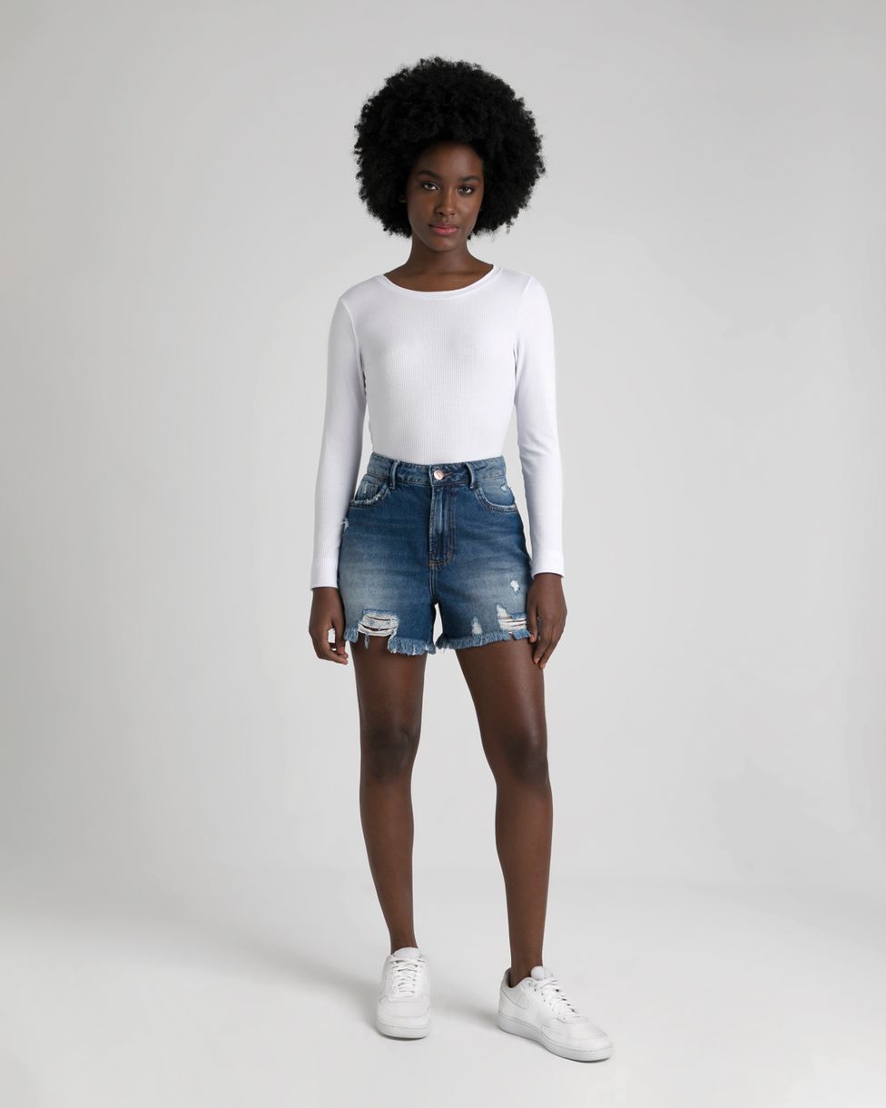 Shorts feminino confeccionado em jeans 100% algodão. Uma peça atualizada em modelagem Boyfriend, com caimento amplo e largo, inspirado nos jeans masculinos. Esse shorts de cintura média conta com passantes no cós, fecho por braguilha e bolsos frontais. Com bolsos posteriores, etiqueta decorativa e detalhes em puídos com barra desfiada. Para um visual descontraído, combine com blusa cropped Enfim, jaqueta sobreposta e bota tratorada!
