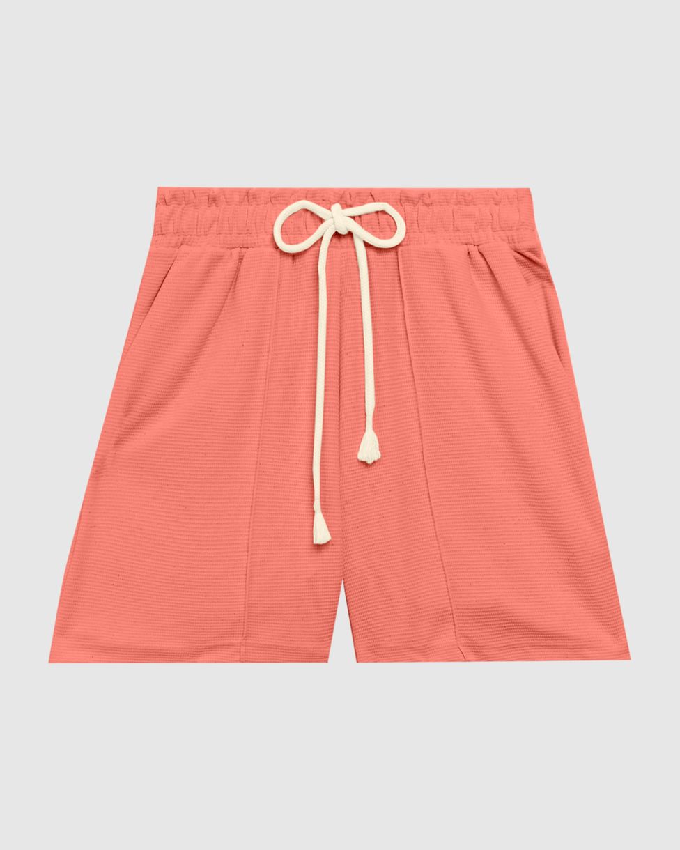 Shorts Feminino Cadarço Frontal Em Malha Texturizada