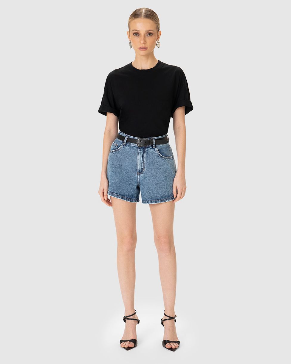 Shorts Feminino Cintura Alta com Cinto em Jeans 100% Algodão - ENFIM une conforto e estilo com a clássica modelagem de cintura alta e o cinto que valoriza a silhueta. Ideal para looks casuais cheios de personalidade, garantindo versatilidade e praticidade no dia a dia.