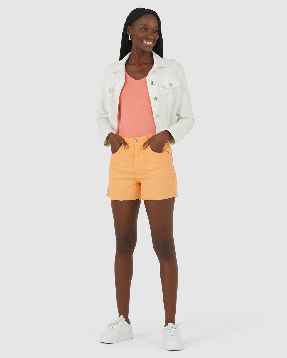 Shorts Feminino Cintura Alta Em Sarja Com Elastano