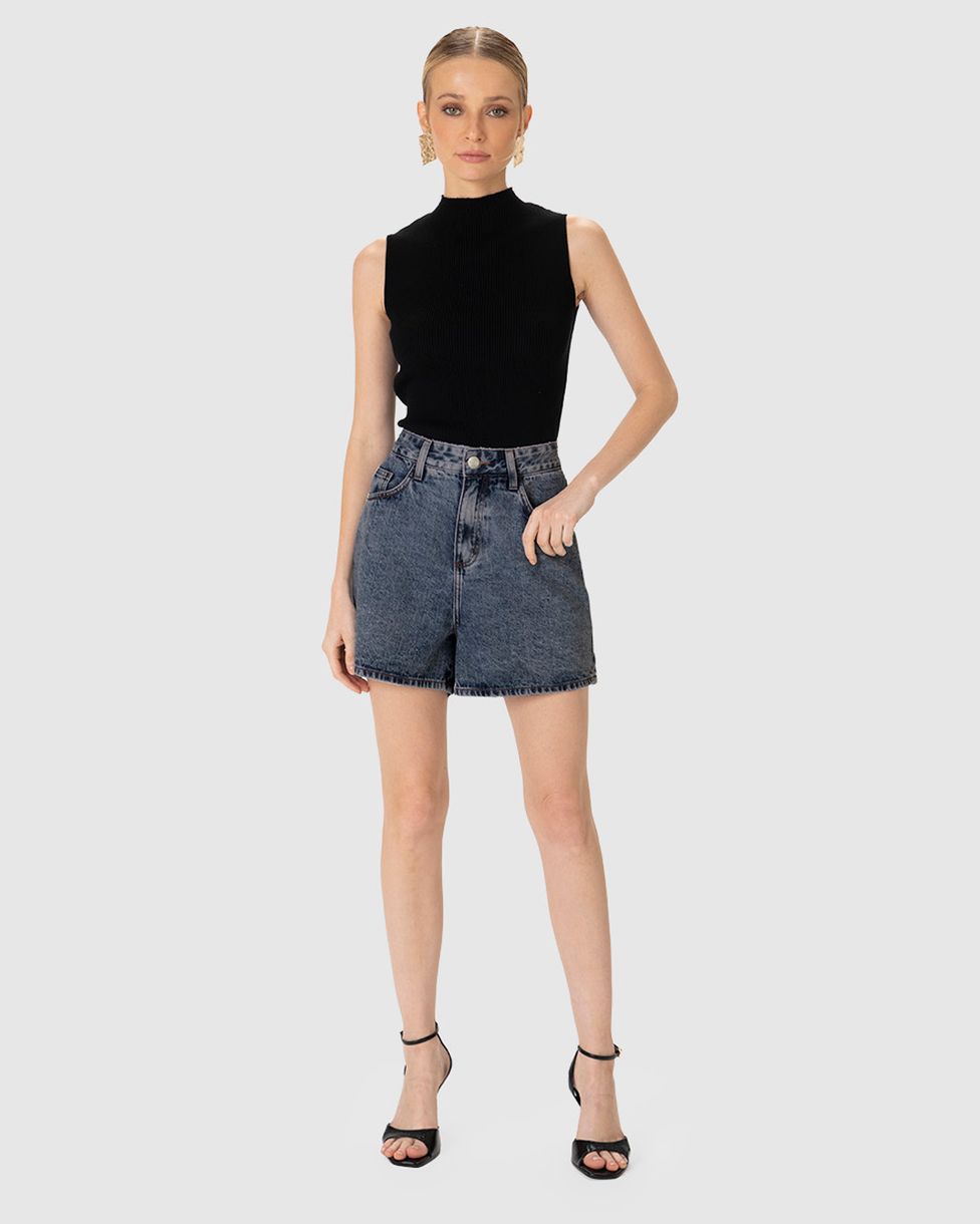 Shorts Feminino Cintura Média Efeito Marmorizado Em Jeans 100% Algodão - ENFIM