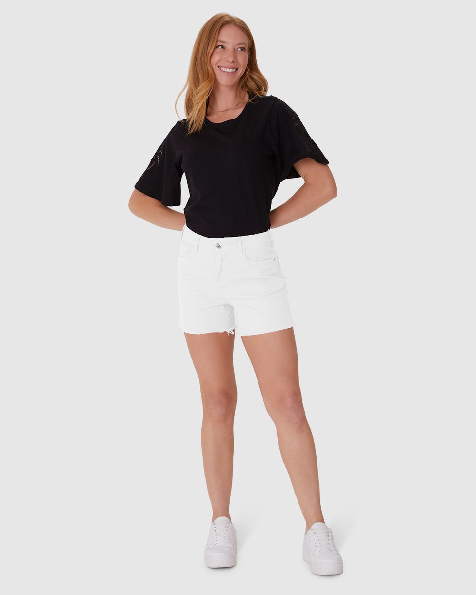 Shorts Feminino Cintura Média Em Sarja Com Elastano
