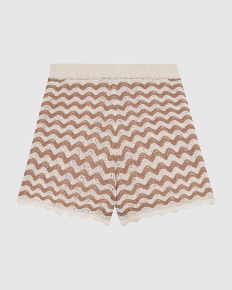 Shorts feminino feito em tricô. Apresentando modelagem mais ajustada ao corpo, esse shorts conta com cós liso, estampa geométrica e barra ondulada. Aposte no conjunto Malwee, combinando com blusa em tricô!