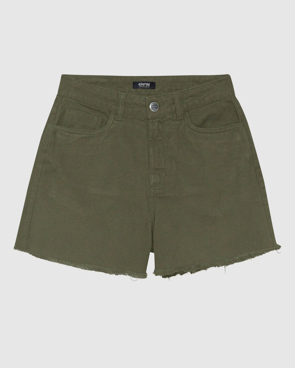 Shorts Feminino Hot Pant Cintura Alta Barra Desfiada Em Sarja Stretch - ENFIM