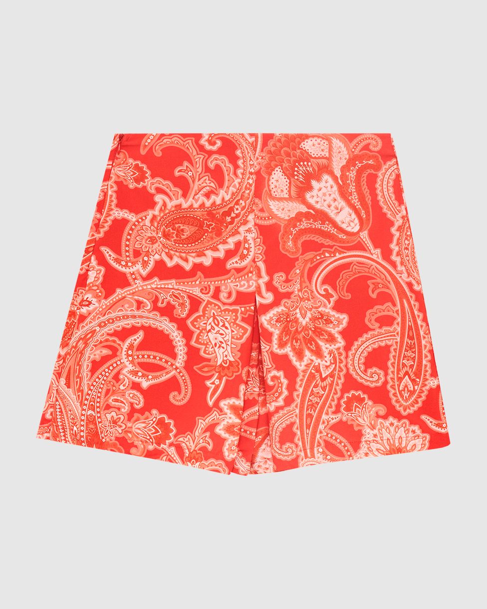Shorts Feminino Paisley Com Pregas Em Viscose