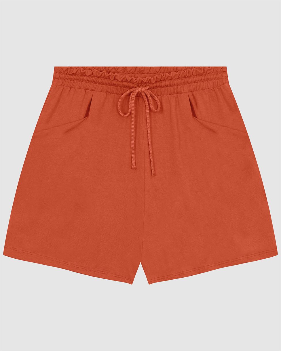 Shorts Feminino Plus Size Cadarço Frontal Em Moletinho De Viscose