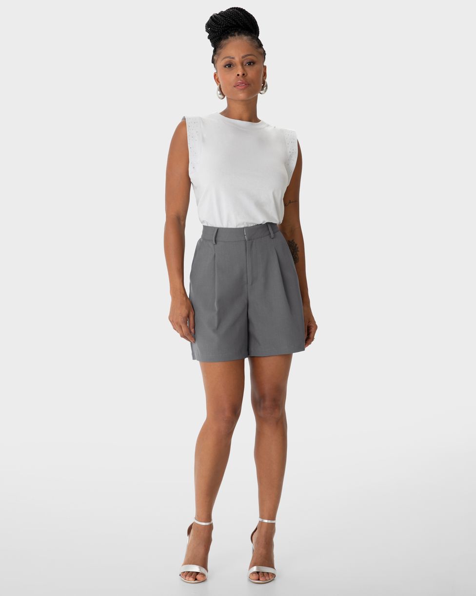Shorts Feminino Pregas Abertura Zíper Em Tecido Alfaiataria - ENFIM