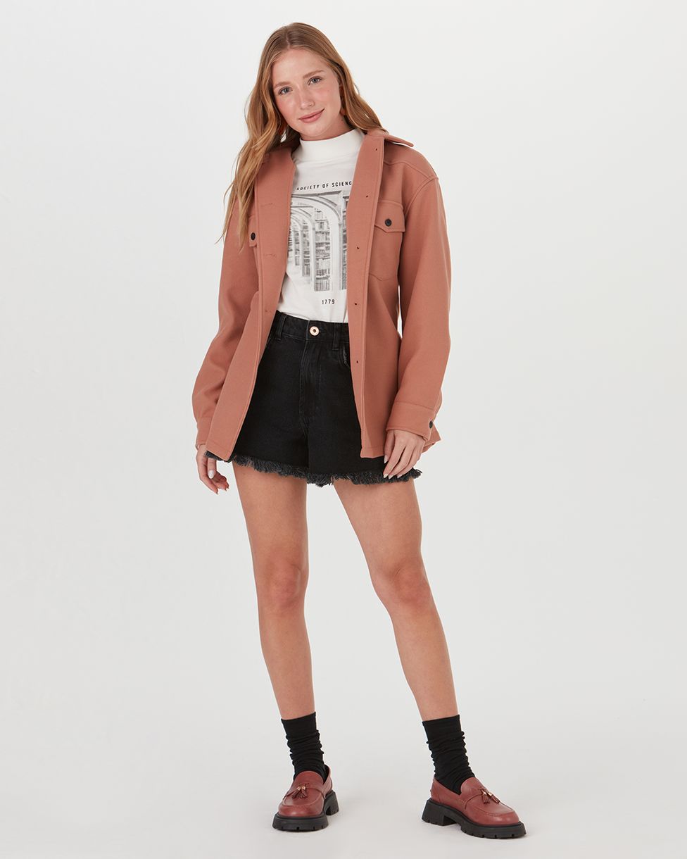 Shorts feminino confeccionado em jeans 100% algodão. O shorts em Linha A, tem cintura alta, é ajustado até o quadril e vai abrindo em Linha A, formando um leve evasê. Esse modelo se diferencia por ter a barra toda desfiada, em estilo moderno contando com passantes no cós, fecho por braguilha e bolsos frontais e posteriores funcionais. Aposte blusa de gola alta Malwee e finalize com bota tratorada!