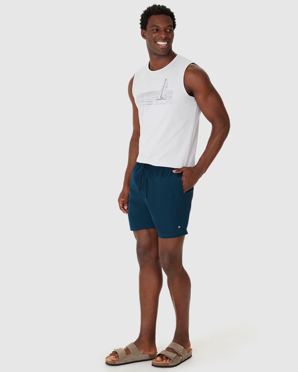 Shorts masculino confeccionado em tecido de tafetá. Um shorts ideal para os momentos de lazer, essa peça apresenta cintura com cadarço funcional no cós, bolsos laterais e bolso único posterior com detalhe de etiqueta. Aposte com camiseta estampada Malwee e tênis sport!