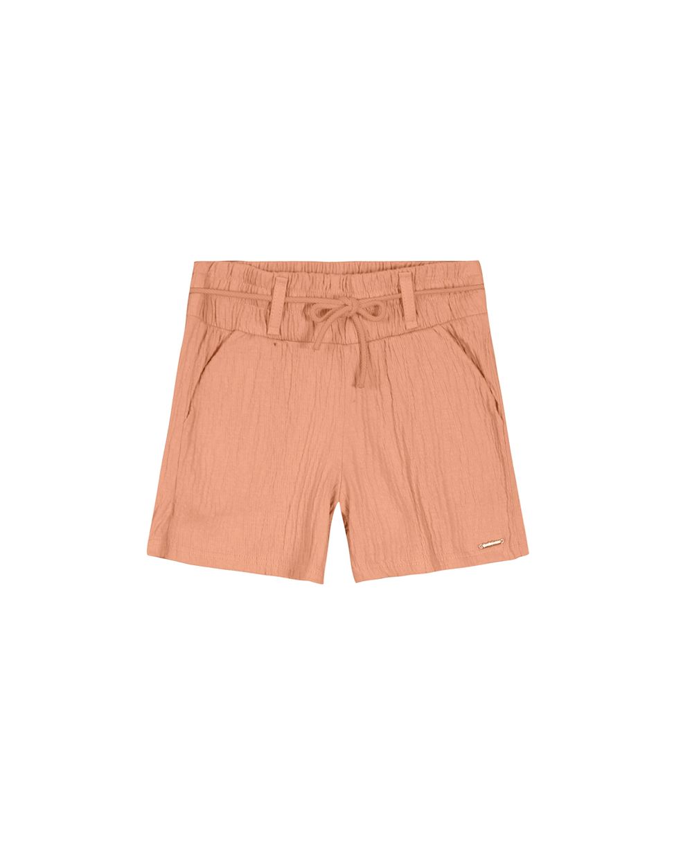 Shorts confeccionado em malha texturizada. Apresentando uma peça básica e com muita versatilidade para o estilo das meninas. Esse shorts conta com cintura em elástico, passantes no cós e bolsos funcionais com detalhe de plaqueta metálica na barra. Combine com blusa da Carinhoso e tênis branco!