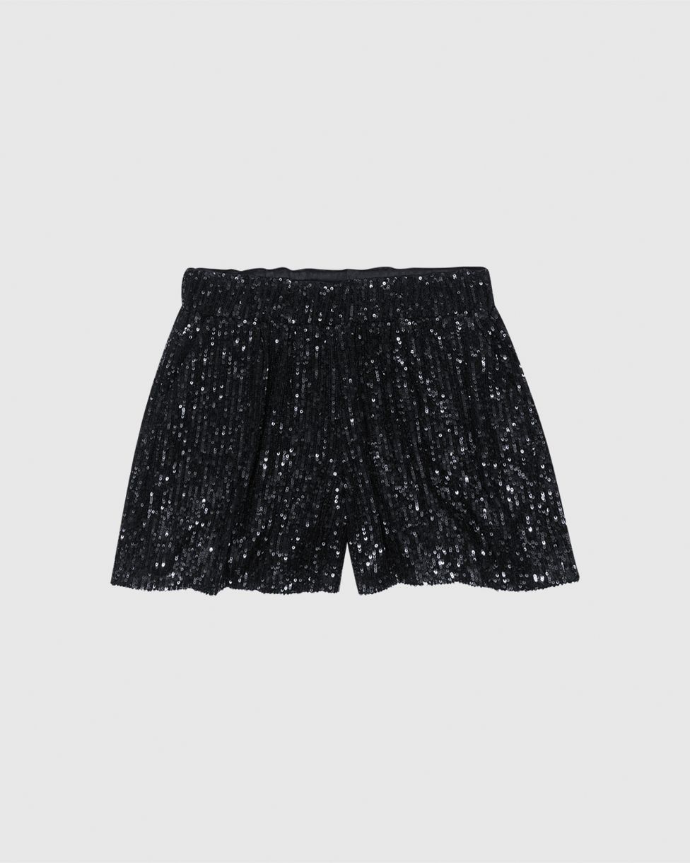 Shorts Menina Evasê Bolso Funcional Em Paetê Malwee Kids Preto - 12