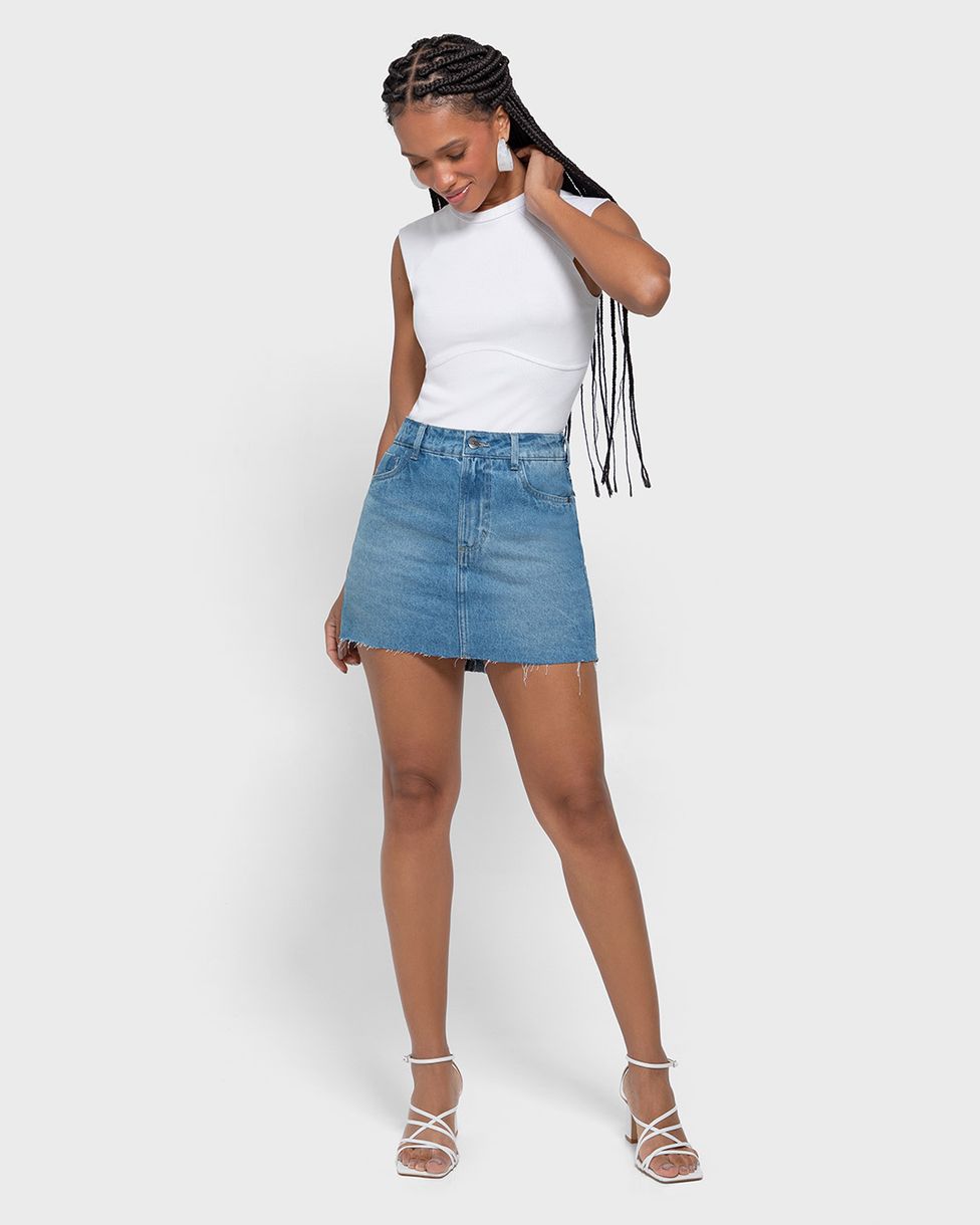 Shorts Saia Feminino Cintura Alta Em Jeans 100% Algodão - ENFIM