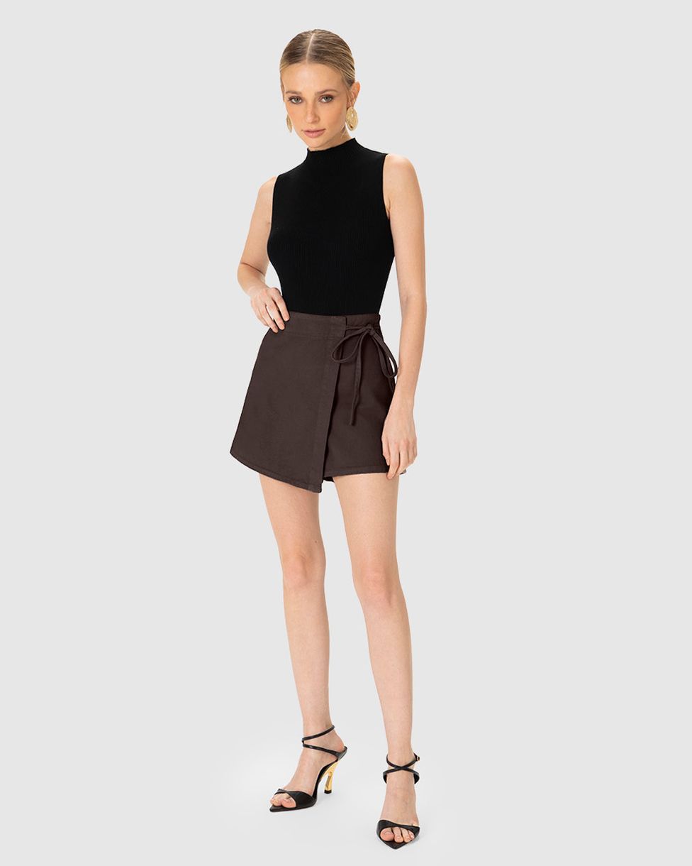 Shorts Saia Feminino Detalhe Amarração Em Sarja 100% Algodão - ENFIM