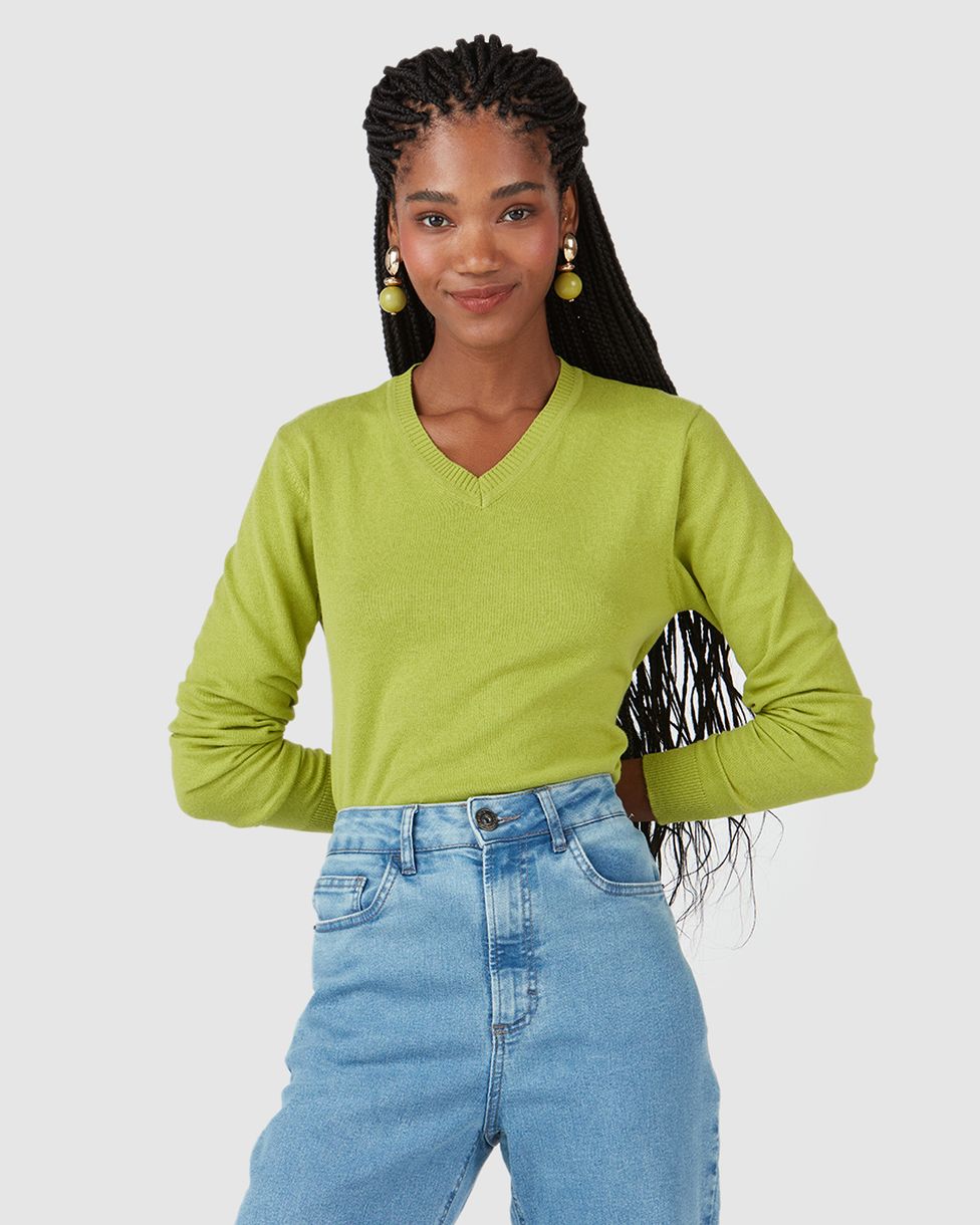 Suéter feminino confeccionado em Tricô. Apresentando uma peça em modelagem Clássica e essencial para usar na estação, ele conta com decote V e mangas longas. Com detalhe para gola e punhos em textura. Além disso, o tricô possui toque suave, sendo macio. É um tecido super aconchegante e ideal para uso nos dias mais amenos. Use como terceira peça em looks casuais como jeans e camiseta Malwee Plus!