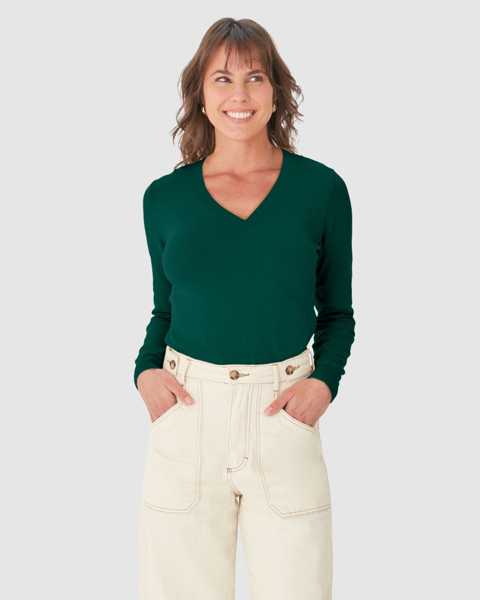 Suéter Básico Feminino Decote V Em Tricô