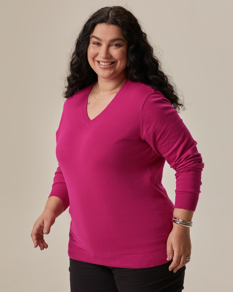 Suéter Básico Feminino Plus Size Gola V Em Tricô