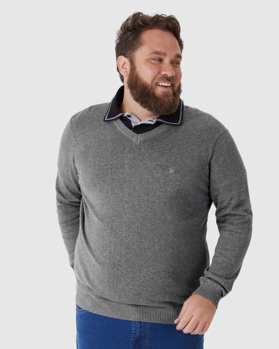 Suéter Básico Masculino Plus Size Decote V Em Tricô