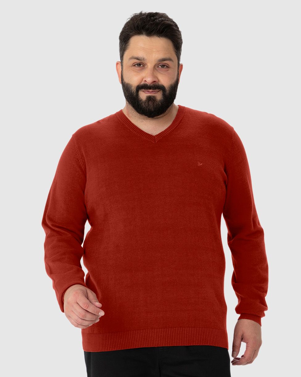 Suéter Básico Masculino Plus Size Decote V Em Tricô