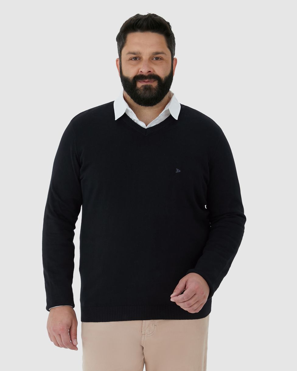 Suéter Básico Masculino Plus Size Decote V Em Tricô