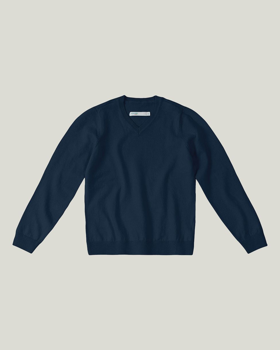 Suéter confeccionado em tricô, um tecido quentinho e ideal para dias de frio. Modelagem tradicional, que acompanha as linhas do corpo com muito conforto. Possui decote em "V" e mangas longas. Detalhe decote, punho e barra canelados. Uma peça versátil para o dia-a-dia da sua pequena e que pode ser usada em diversas ocasiões. Invista em sobreposição com camisa por baixo, calça jeans colorida e tênis flatform, para arrematar com casualidade!