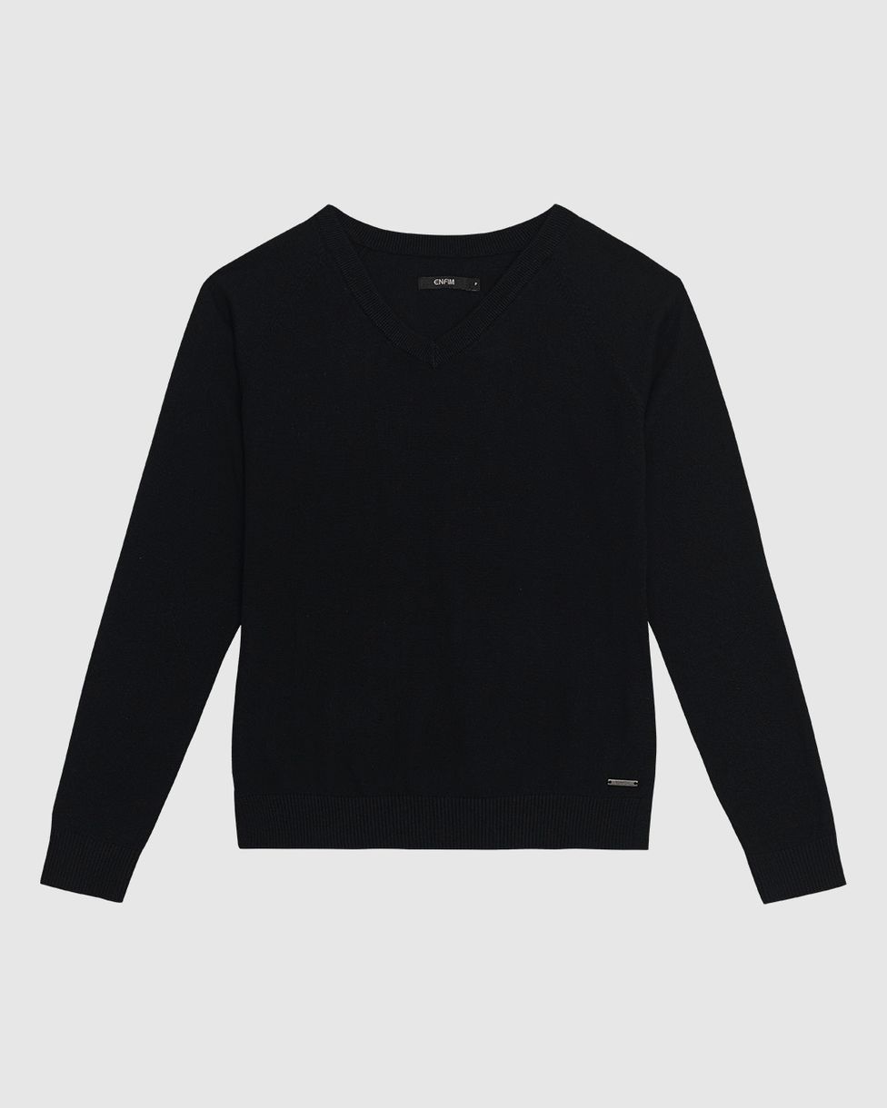 Suéter Feminino Gola V Manga Longa Em Tricô - ENFIM