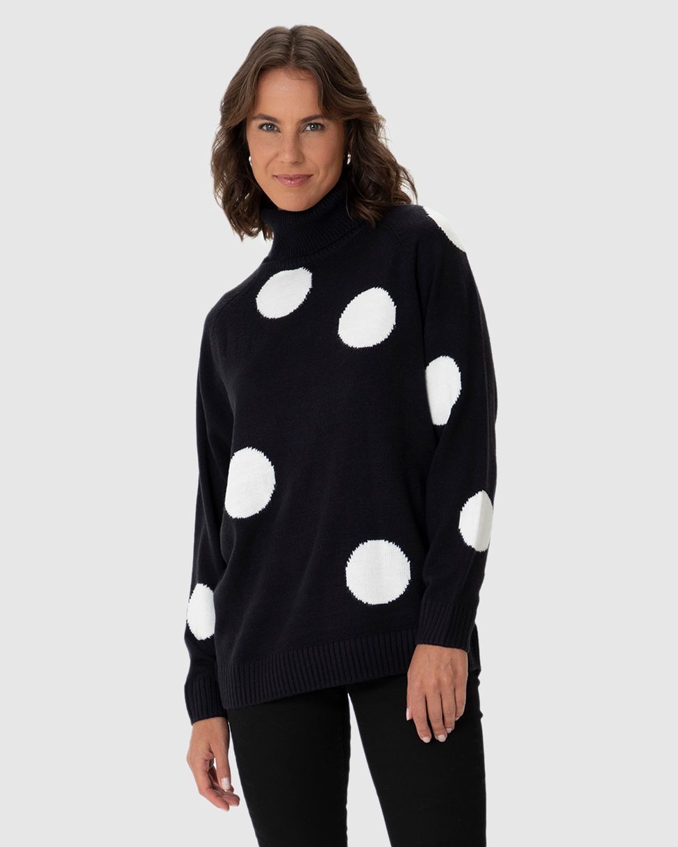 Suéter Feminino Longo Gola Alta Poá Gola Alta Em Tricô