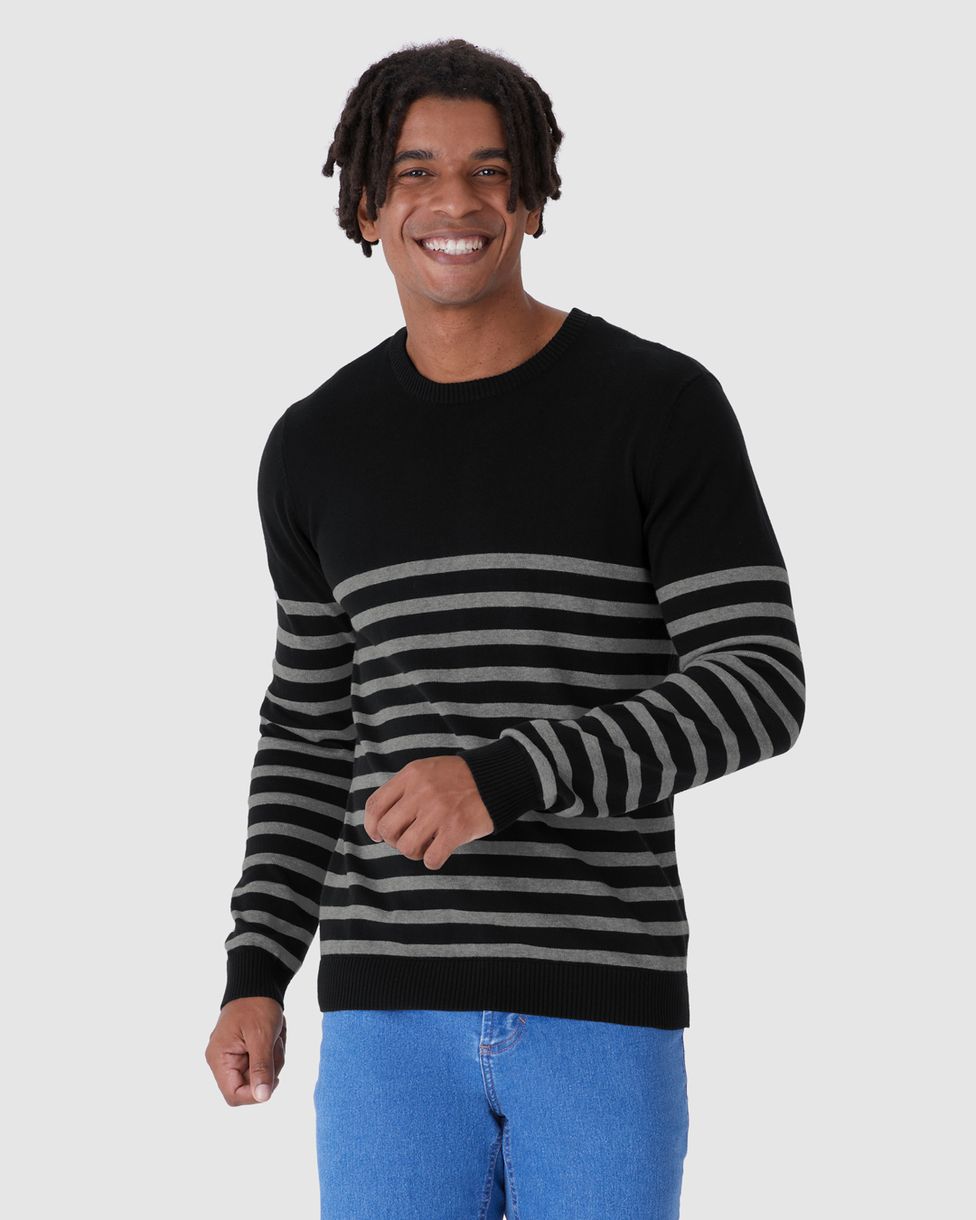 Suéter Masculino Manga Longa Listras Frontais Em Tricô