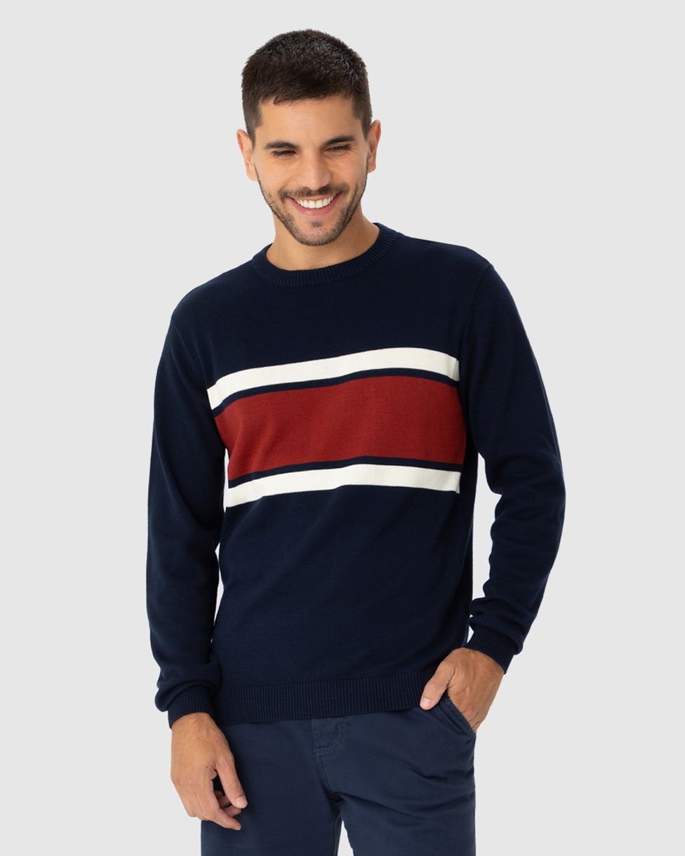 Suéter Masculino Manga Longa Listras Frontais Em Tricô