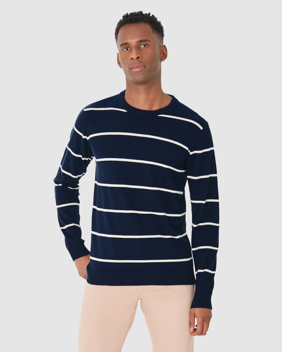 Suéter Masculino Manga Longa Listras Frontais Em Tricô
