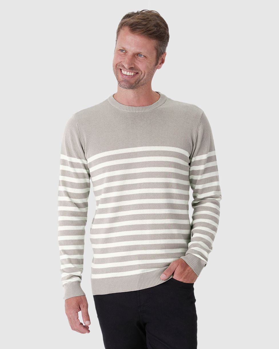 Suéter Masculino Manga Longa Listras Frontais Em Tricô