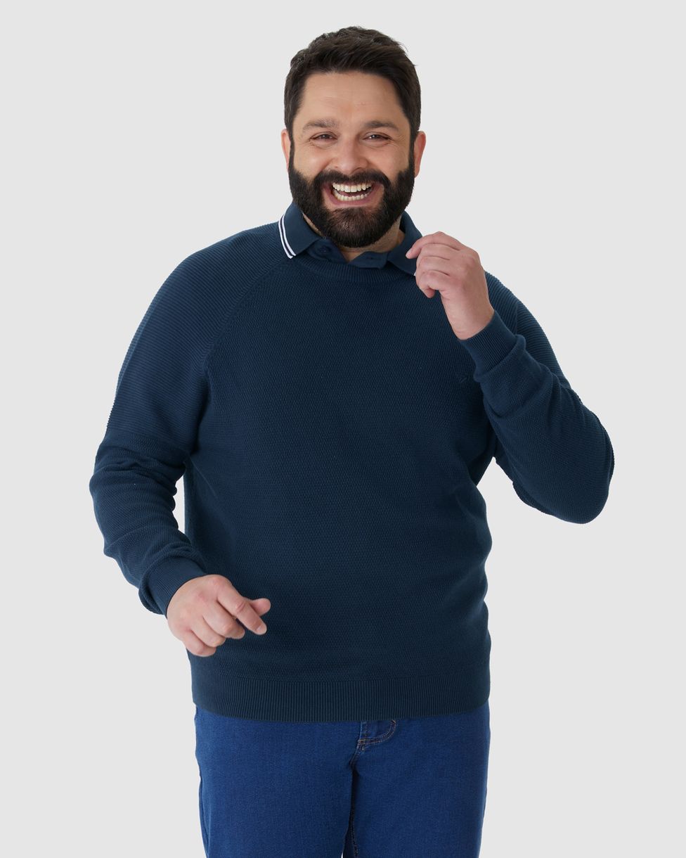 Suéter Masculino Plus Size Manga Longa Em Tricô
