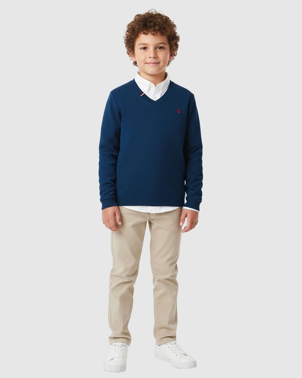 Suéter Menino Decote V Com Bordado Em Tricô Carinhoso
