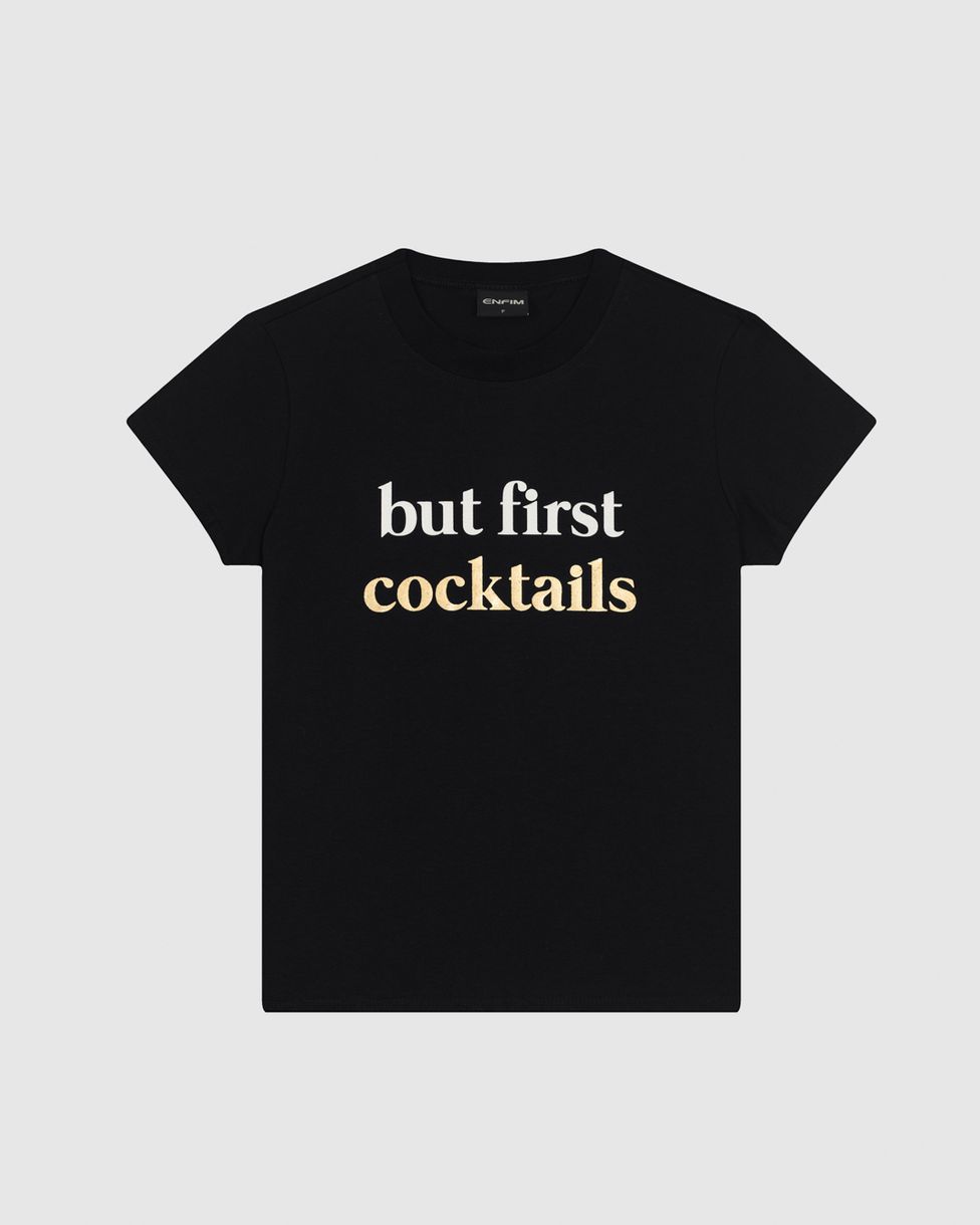 T-Shirt Feminina Baby Look Estampa Foil Cocktails Em Algodão - ENFIM