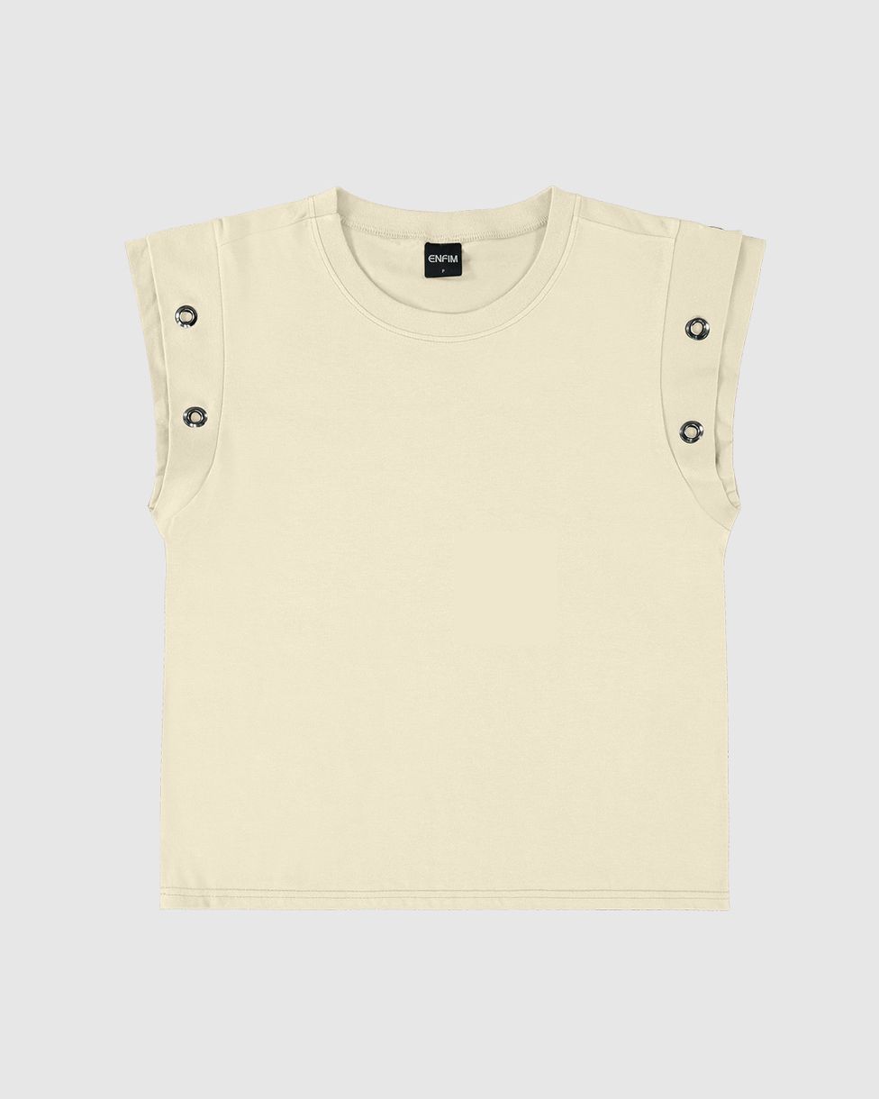 T-Shirt Feminina Muscle Tee Mangas Com Ilhóses Em Algodão - ENFIM