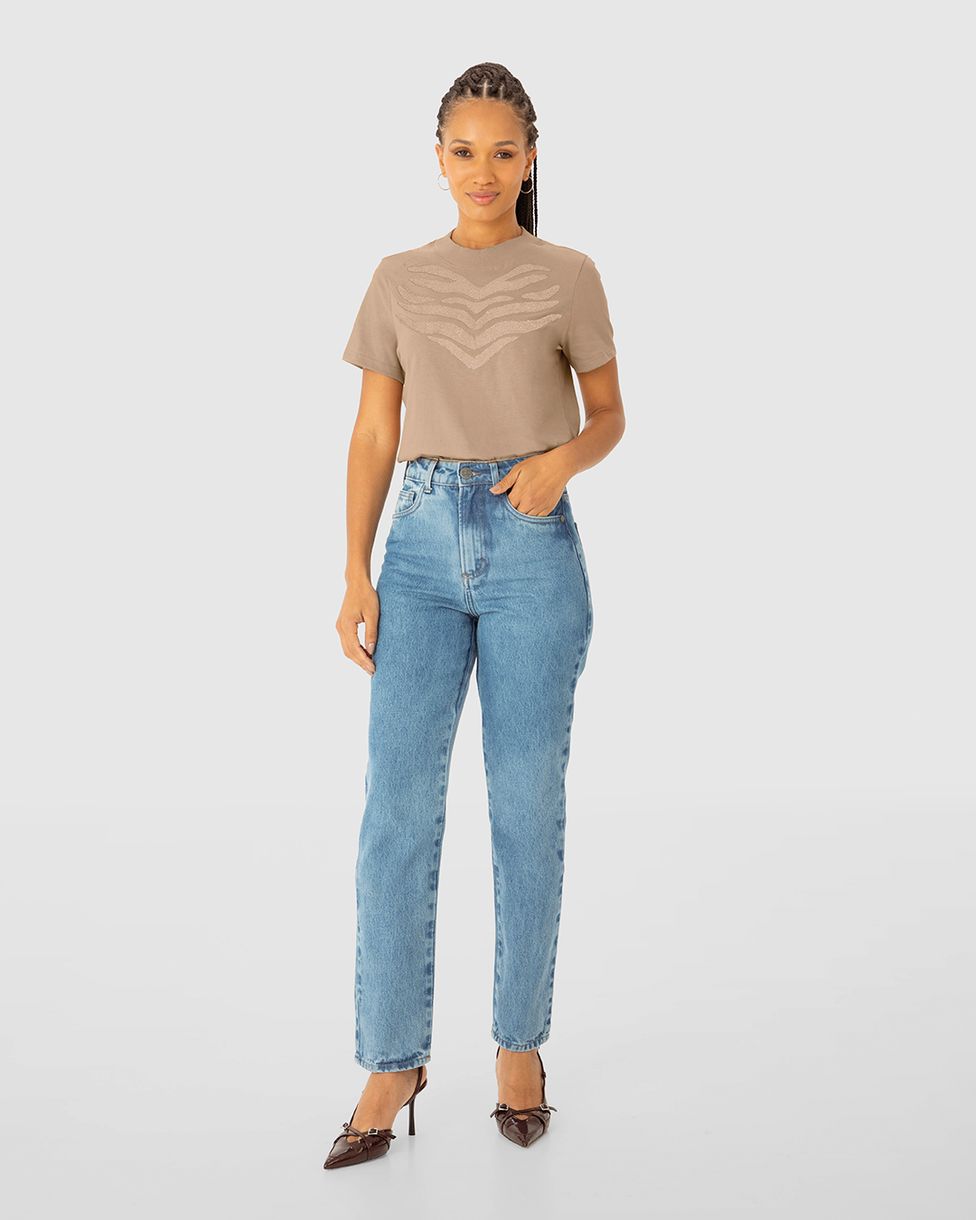 T-Shirt Feminina Slim Estampa Desenho Orgânico Em Algodão - ENFIM