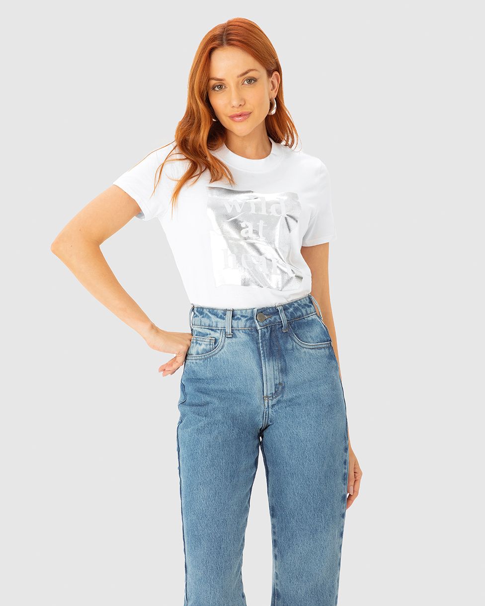 T-Shirt Feminina Slim Wild At Heart Estampa Foil Em Algodão - ENFIM