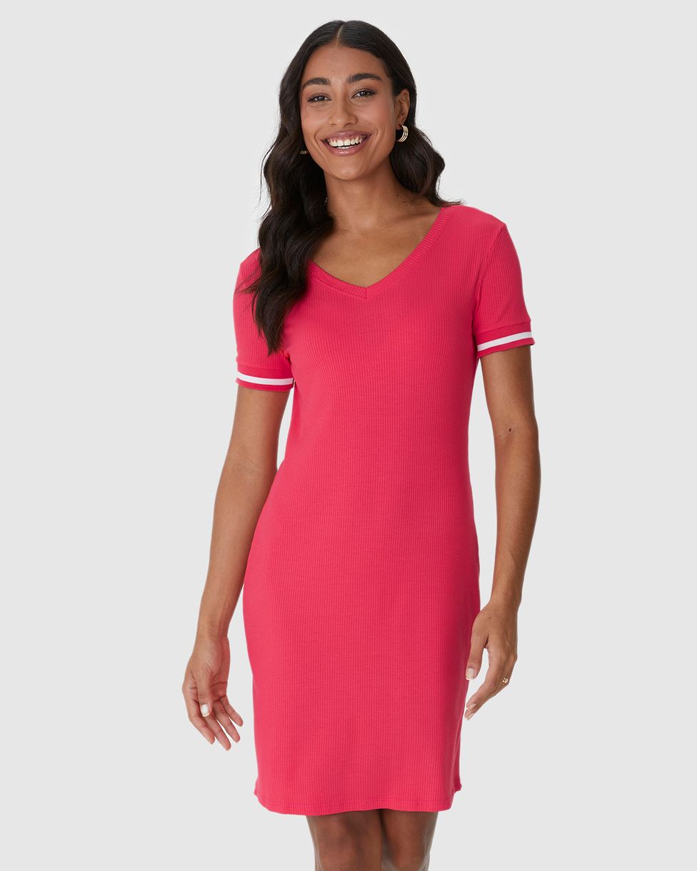 FemininoVestidosVestidos CurtosVestido Feminino Manga Retilínea Em Malha Viscose Canelada